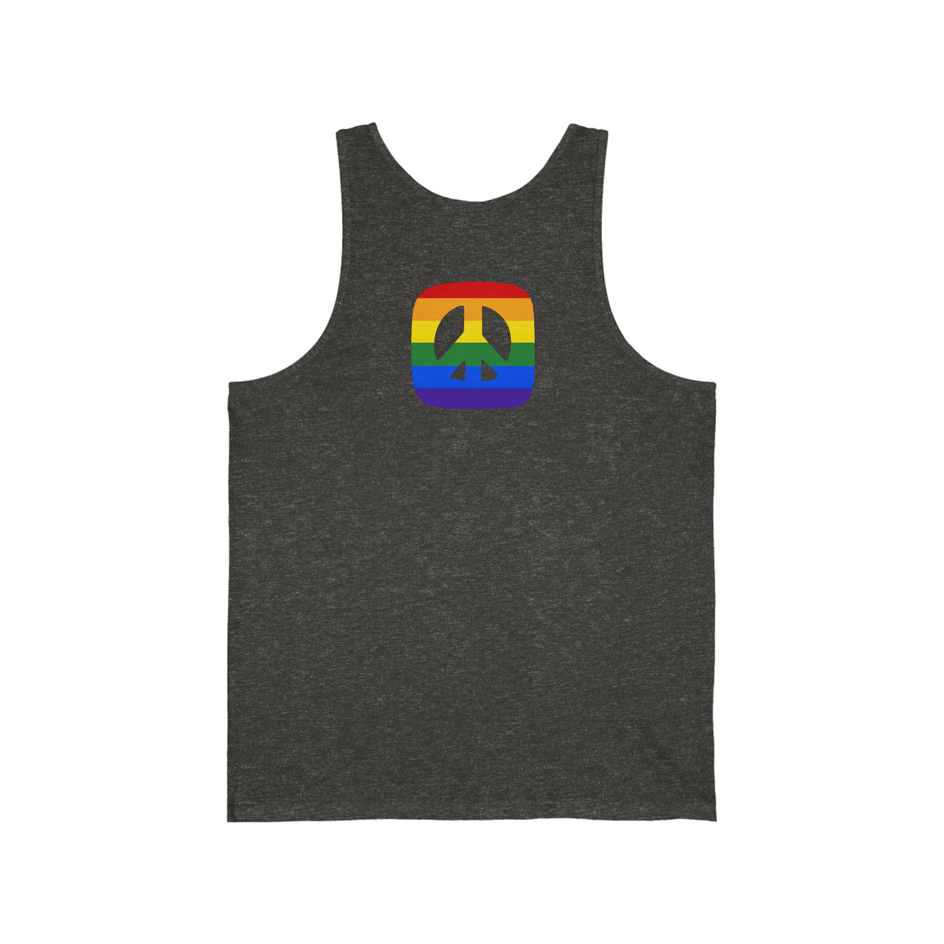 The Diverse Peace Pride tank is a must-have unisex jersey that fits like a well-loved favorite. The high-quality print makes it an ultimate statement shirt for years to come. This item has side seams to provide structural support. All bindings are the same fabric as the rest of the tank. Depending on the color, cotton, polyester, or rayon can appear.