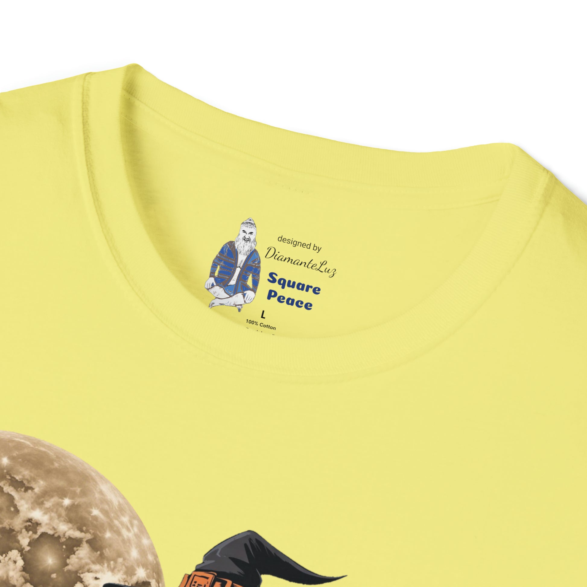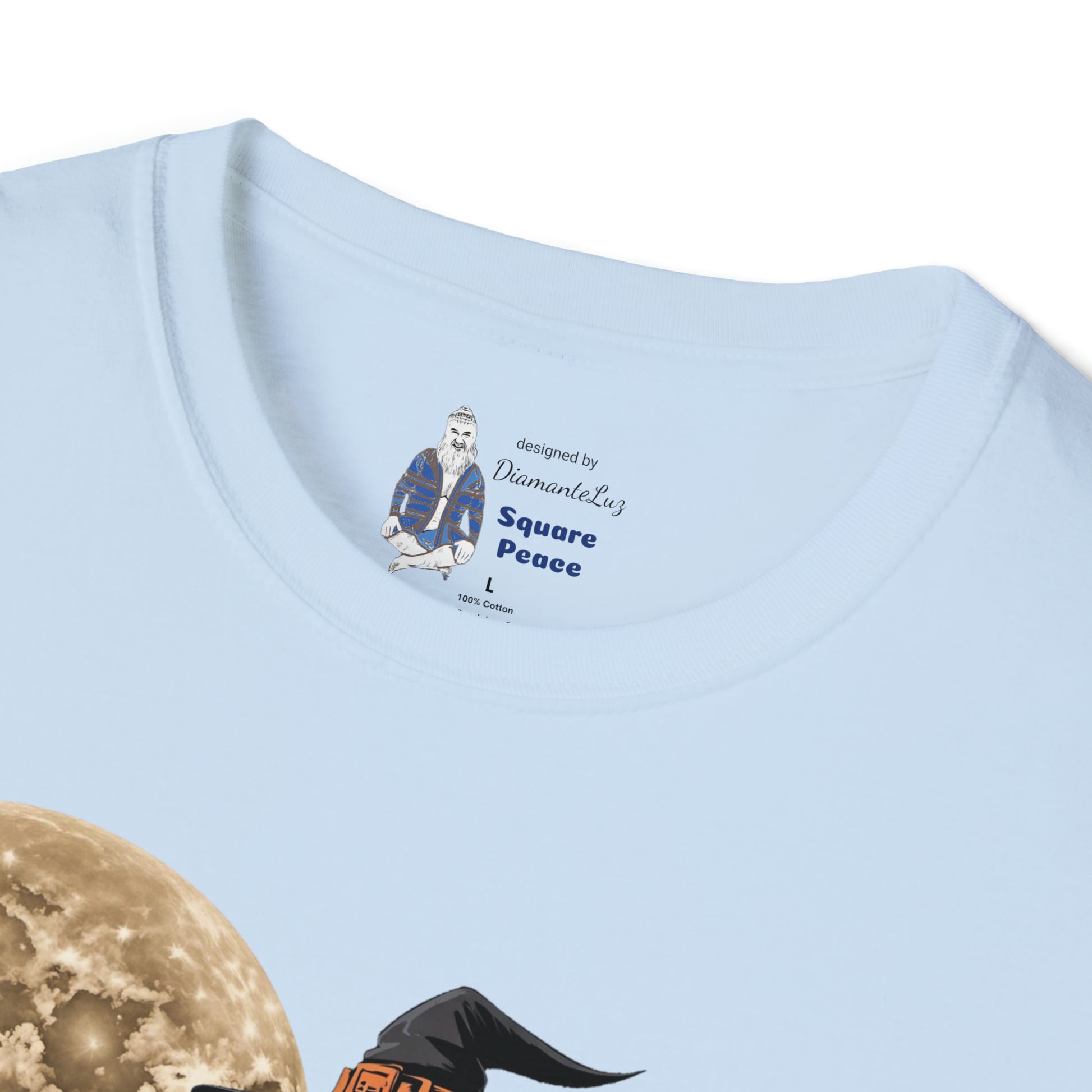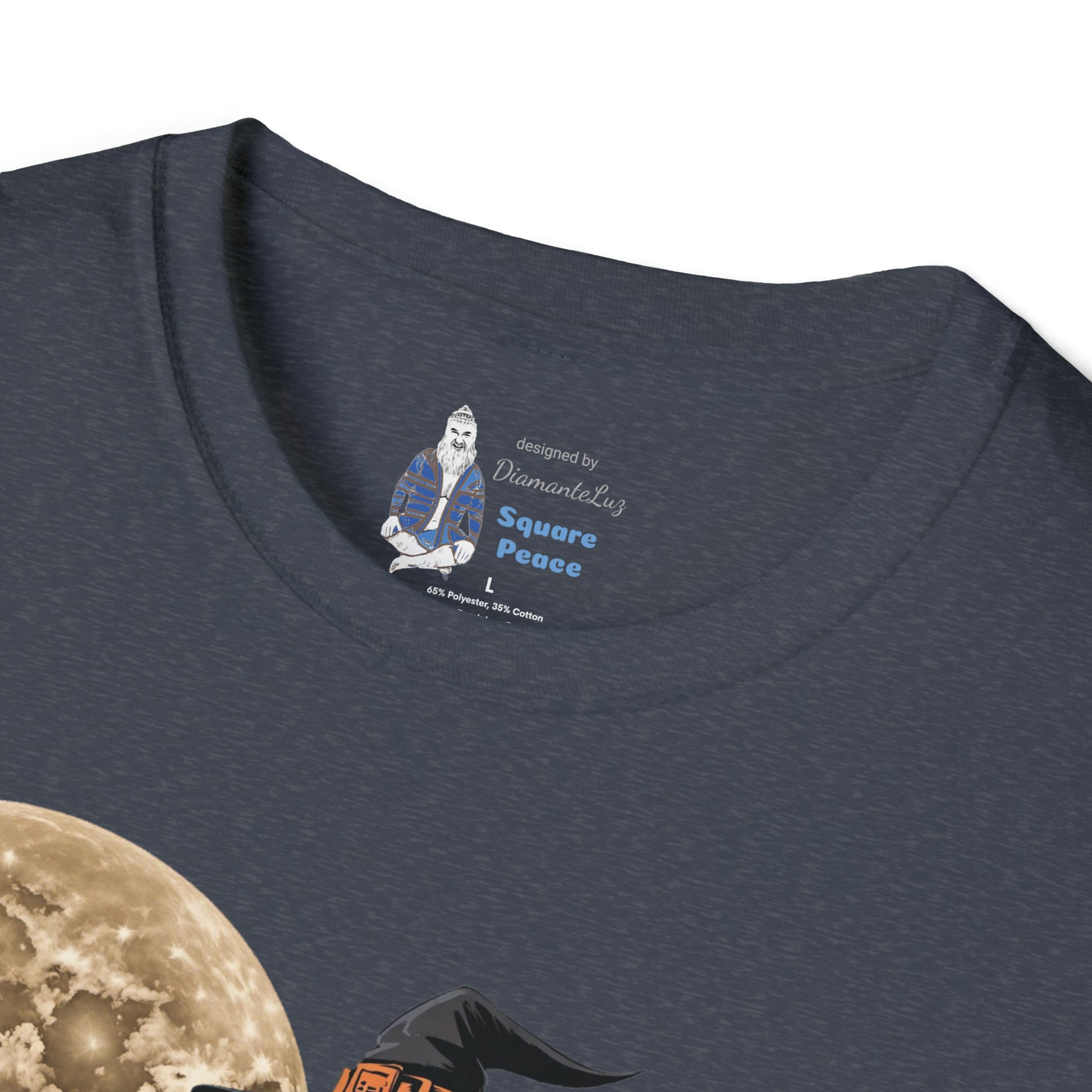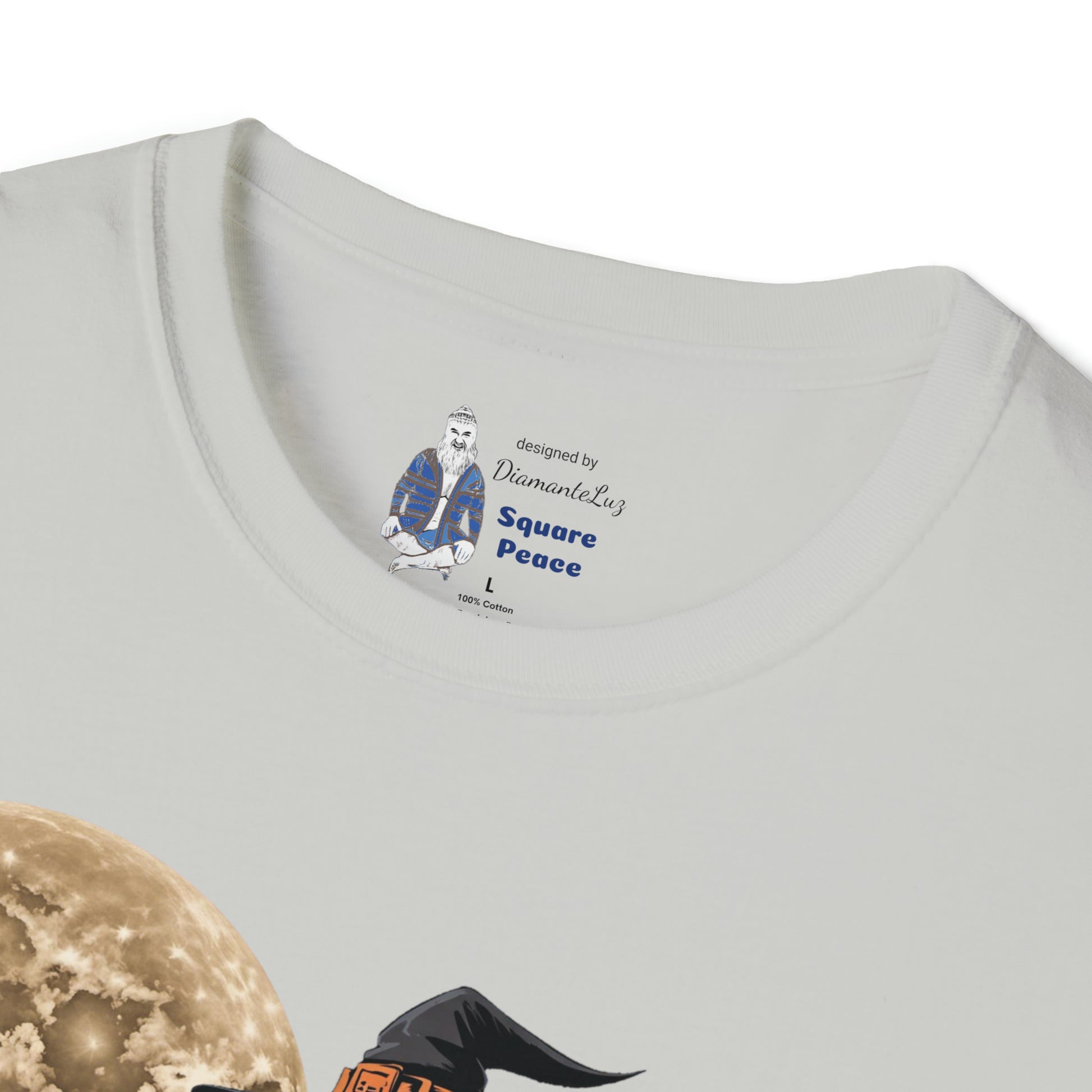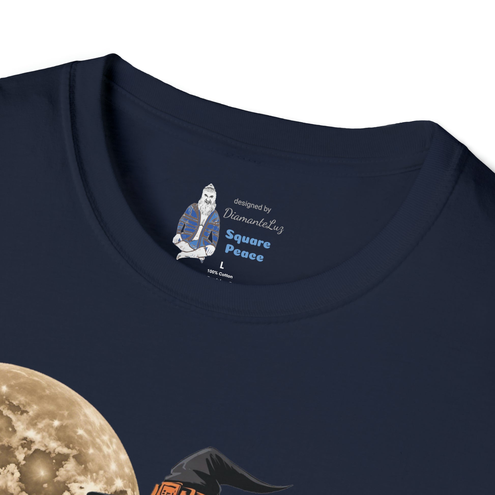 Nothing brings peace, love, and joy like our pets. Once we fall into slumber, who knows what our pets might be up to. The depicted Halloween night is not one of terror but of Terrier, specifically Boston Terriers. A Boston Terrier is flying the night sky on the lookout for Halloween treats. Her BT pal is sits atop a carved jack-o-lantern looking stylish dressed in a festive Halloween cape with matching hat. Hanging out with the pack is their feline friend who doesn't seem to realize he is not a dog. Have fun with the spirit of Halloween dressed in a festive Night of Terrier Halloween shirt. This tongue-in-cheek mash-up of Peace and Halloween is intended to trigger smiles. Wishing you peace, love, and ART!!!