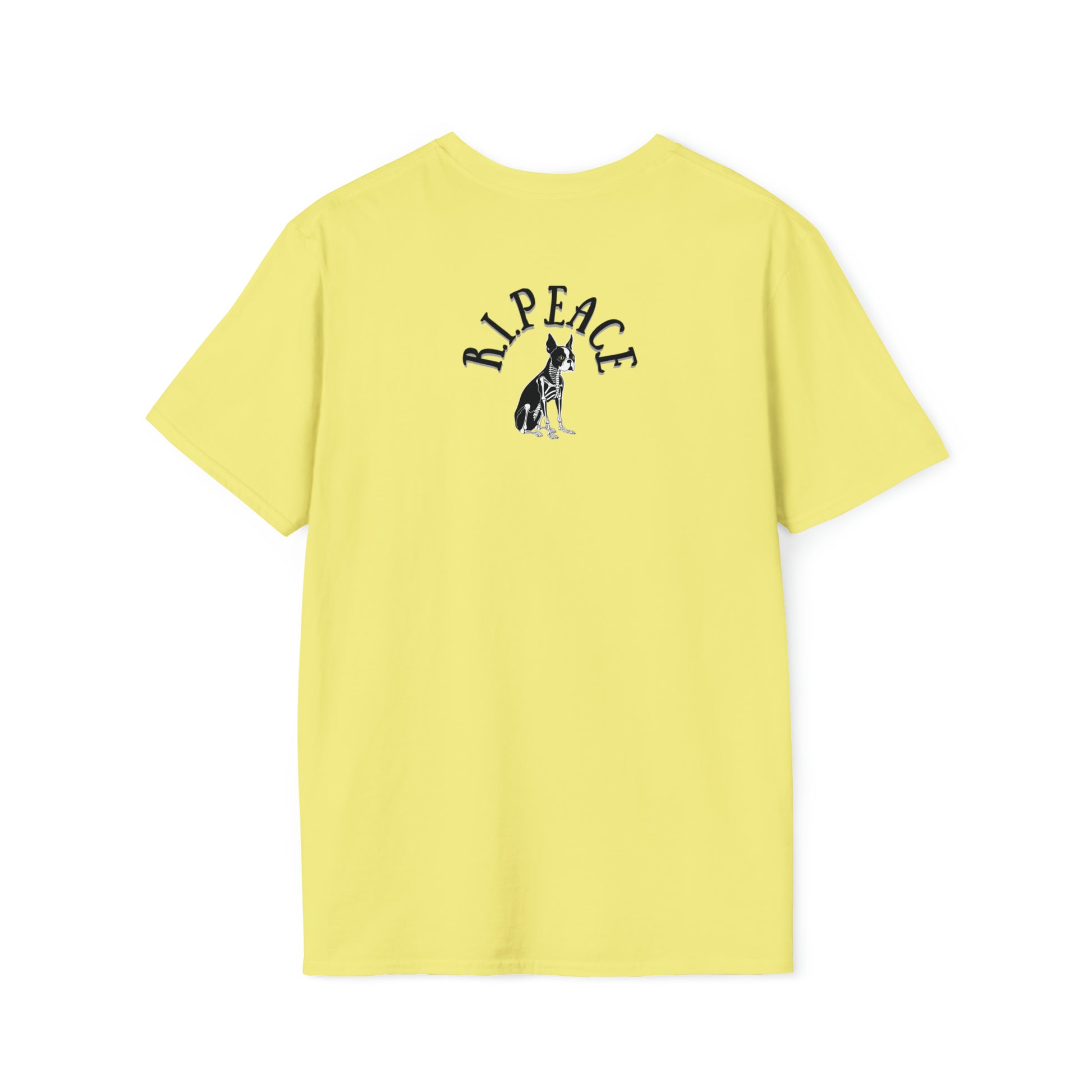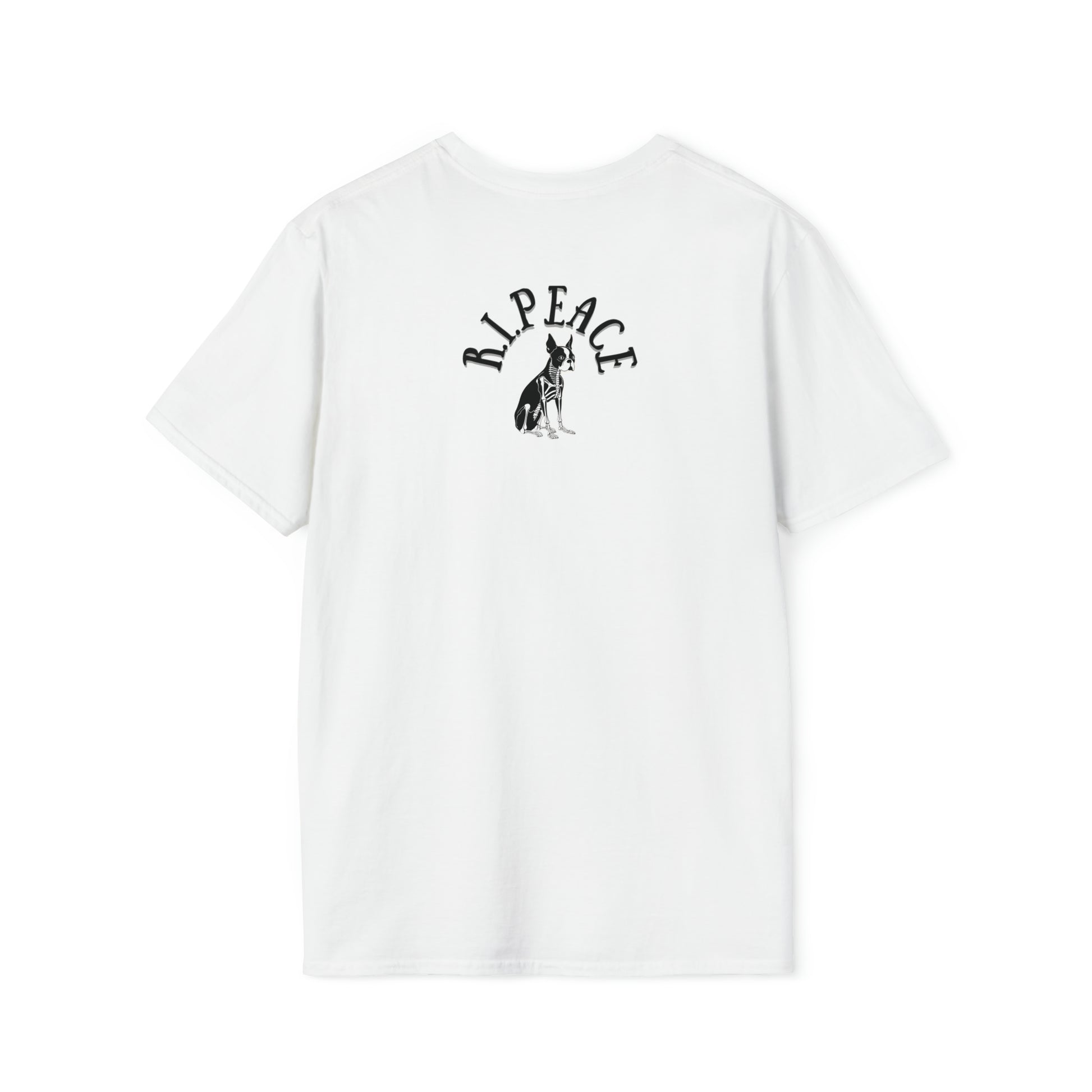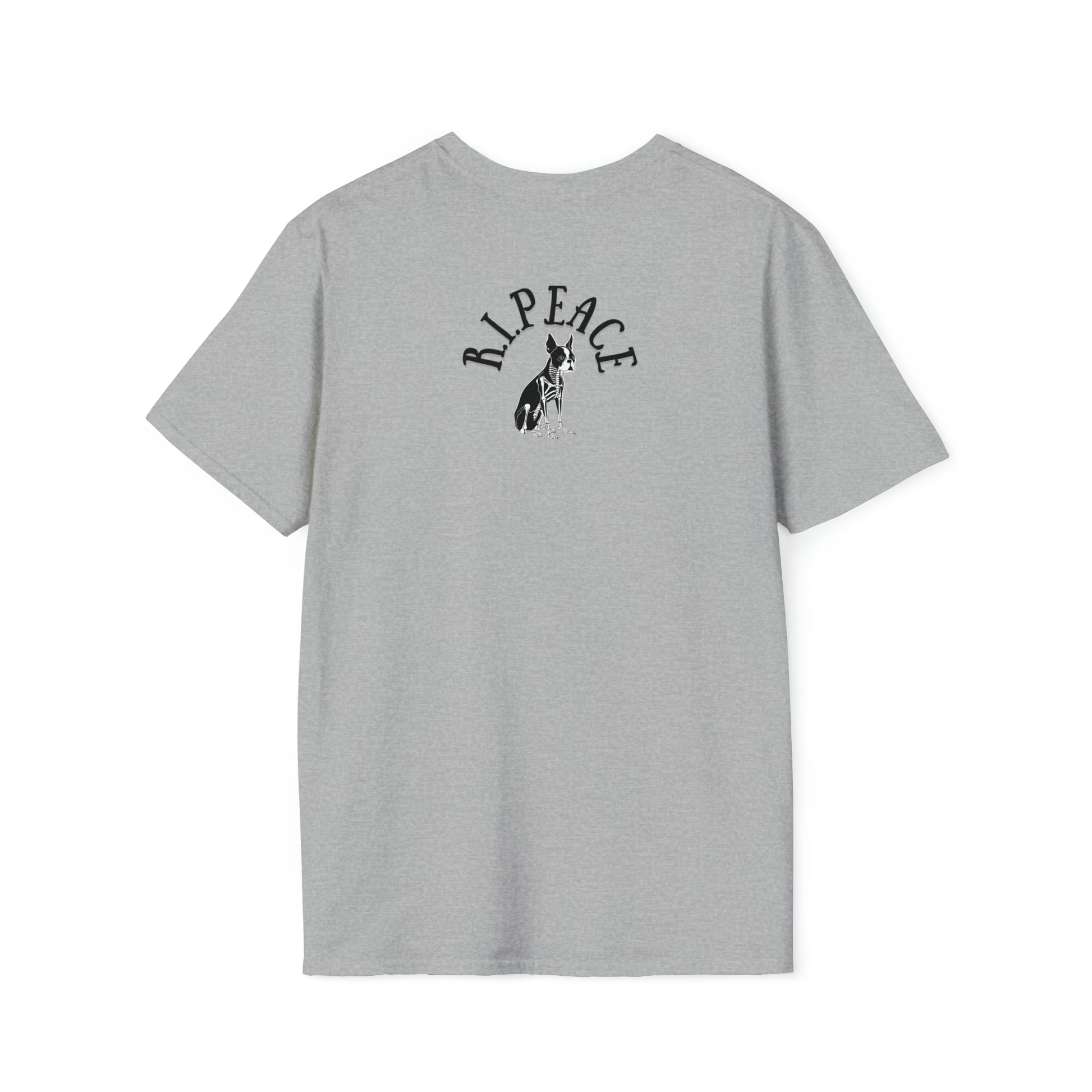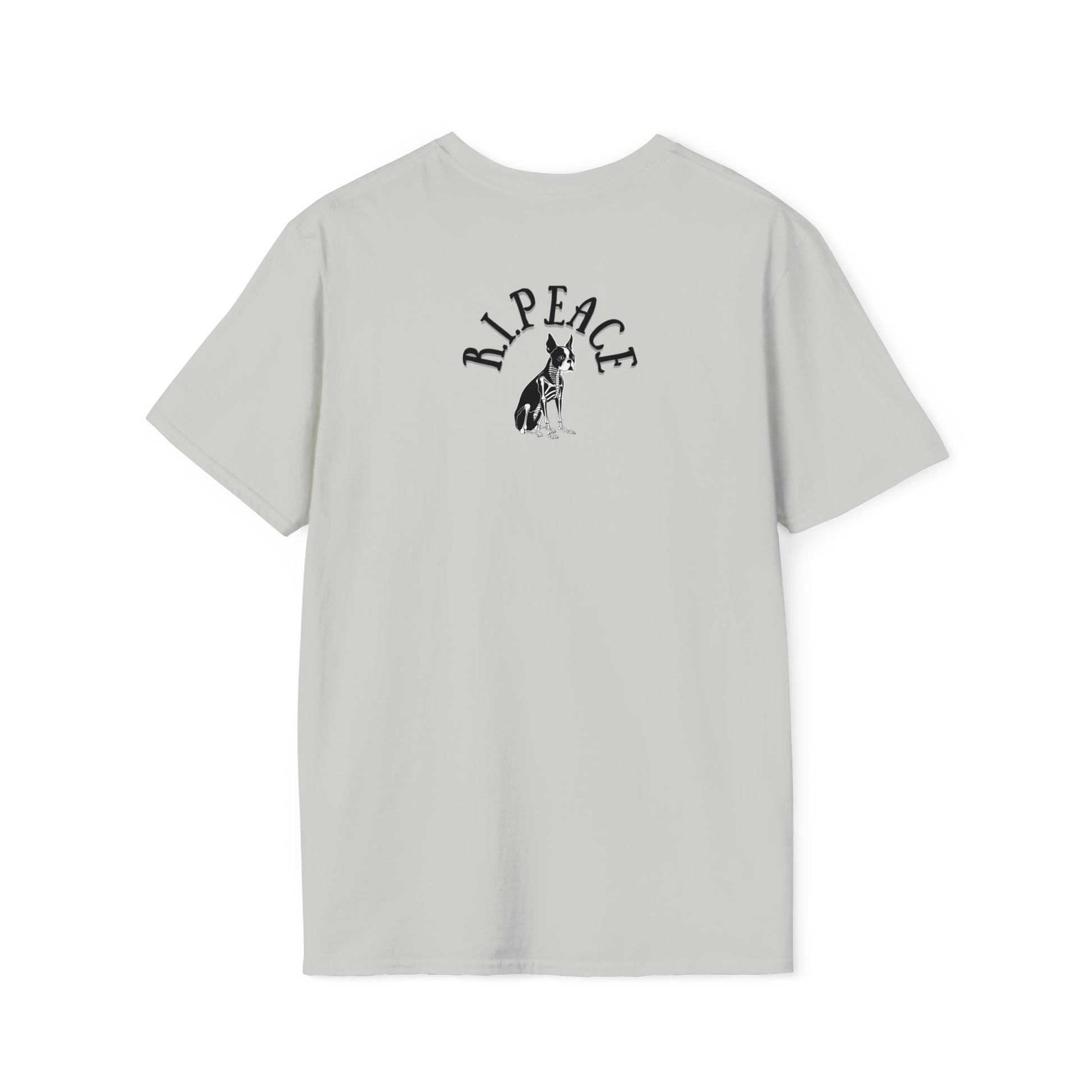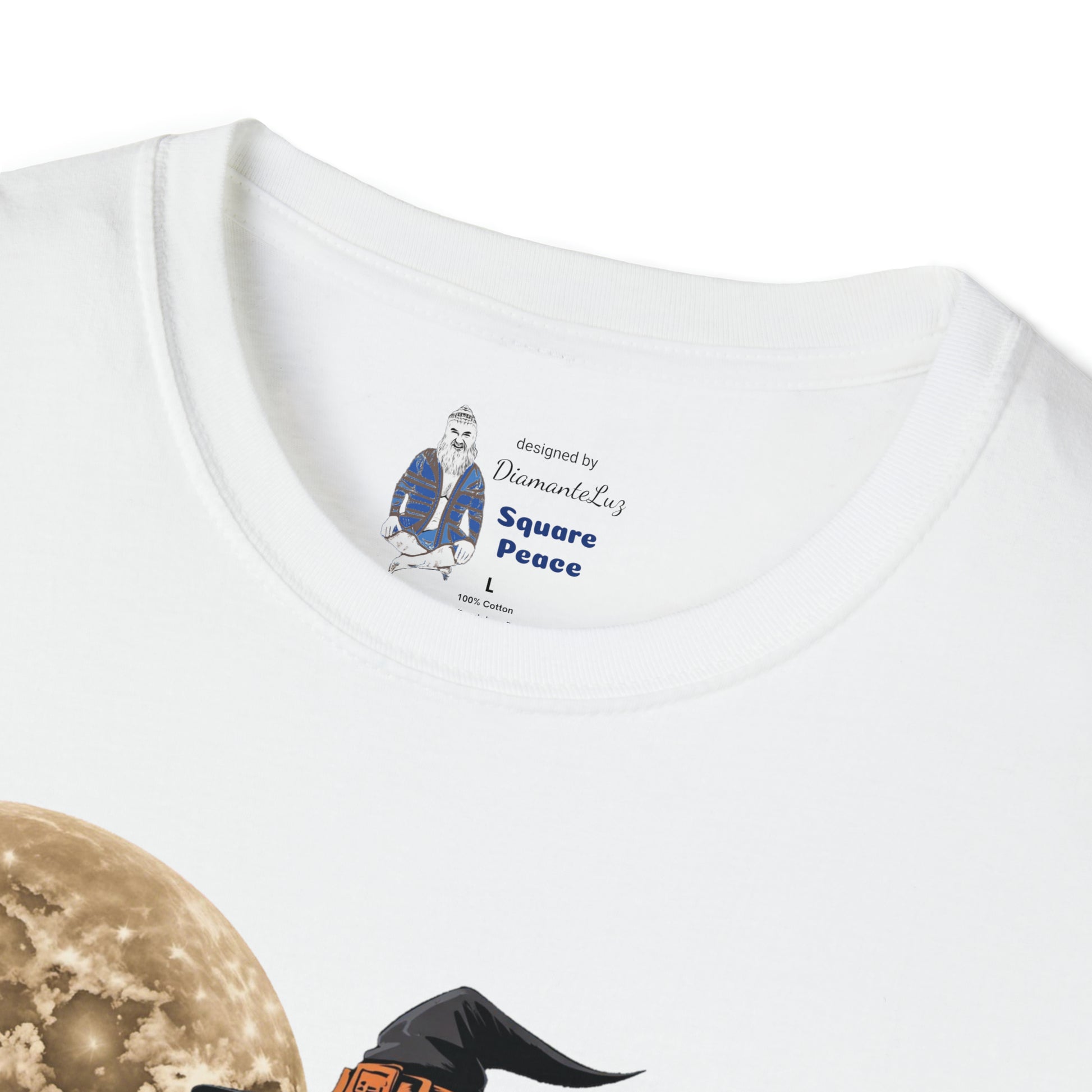 Nothing brings peace, love, and joy like our pets. Once we fall into slumber, who knows what our pets might be up to. The depicted Halloween night is not one of terror but of Terrier, specifically Boston Terriers. A Boston Terrier is flying the night sky on the lookout for Halloween treats. Her BT pal is sits atop a carved jack-o-lantern looking stylish dressed in a festive Halloween cape with matching hat. Hanging out with the pack is their feline friend who doesn't seem to realize he is not a dog. Have fun with the spirit of Halloween dressed in a festive Night of Terrier Halloween shirt. This tongue-in-cheek mash-up of Peace and Halloween is intended to trigger smiles. Wishing you peace, love, and ART!!!